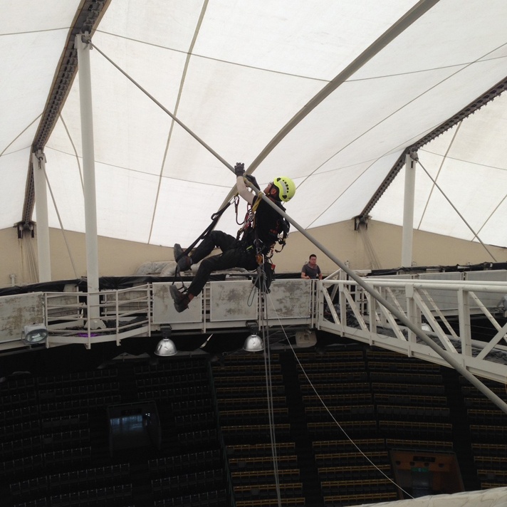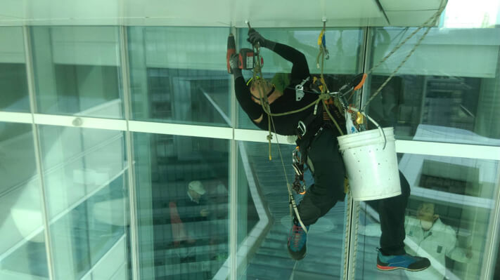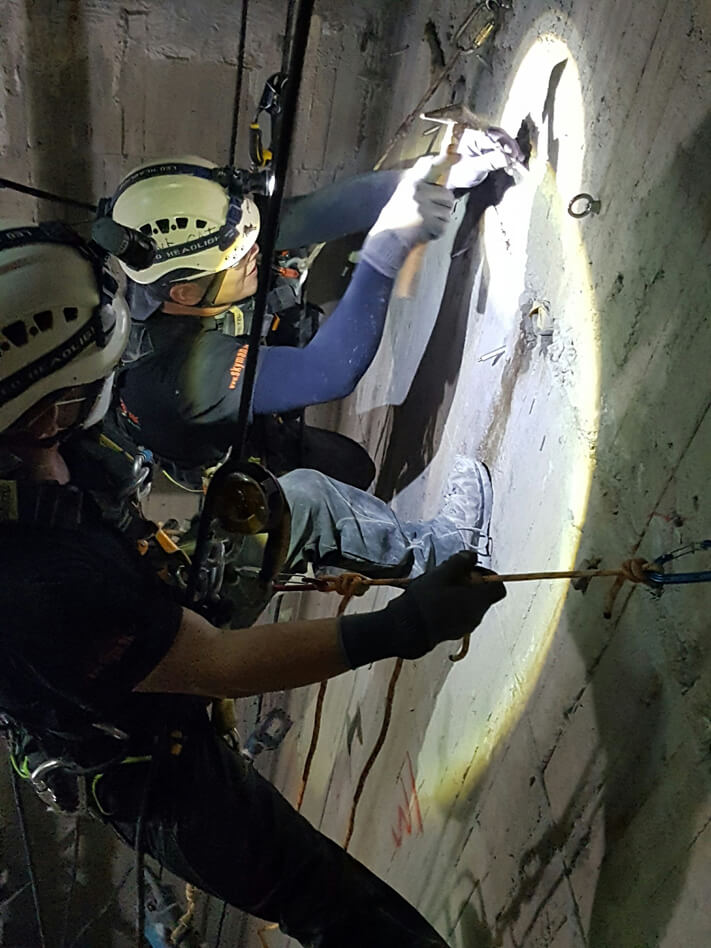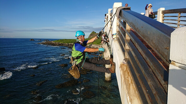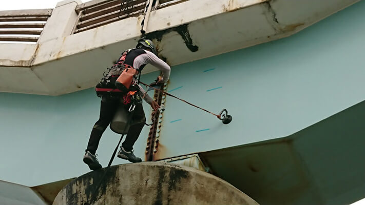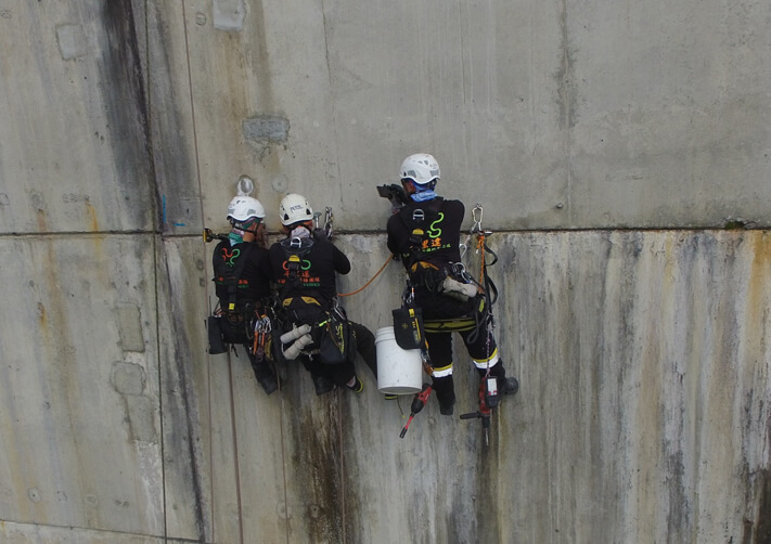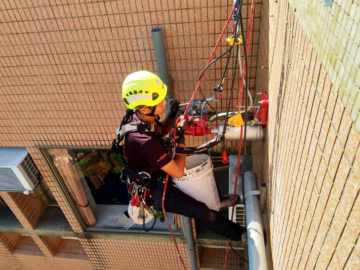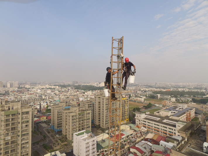千里達企業採用高空繩索技術、高空作業車、吊籠操作技術,進行各項困難地形修繕工程,具有安全性高、受地面環境局限性小、快速的系統架設、可多人同時施工及不會造成營運中斷,可為客戶降低高昂的修繕成本等優點。