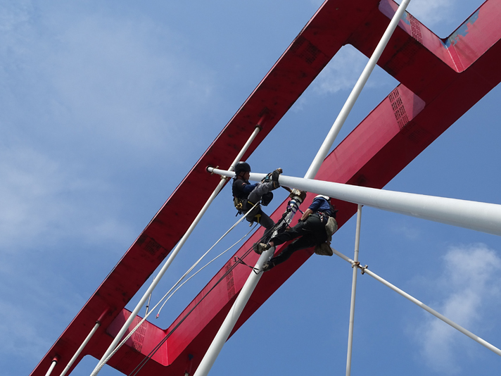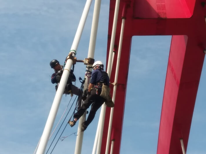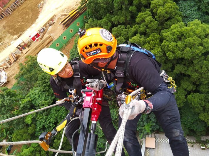 千里達企業從 2010 年開始接受勞動檢查處輔導專案訓練高空技術工程師,每位工程師需接受最少64小時的專業訓練,並通過最嚴格的評核,目前每位工程師平均每年需累計 1000 小時以上高空作業經歷。